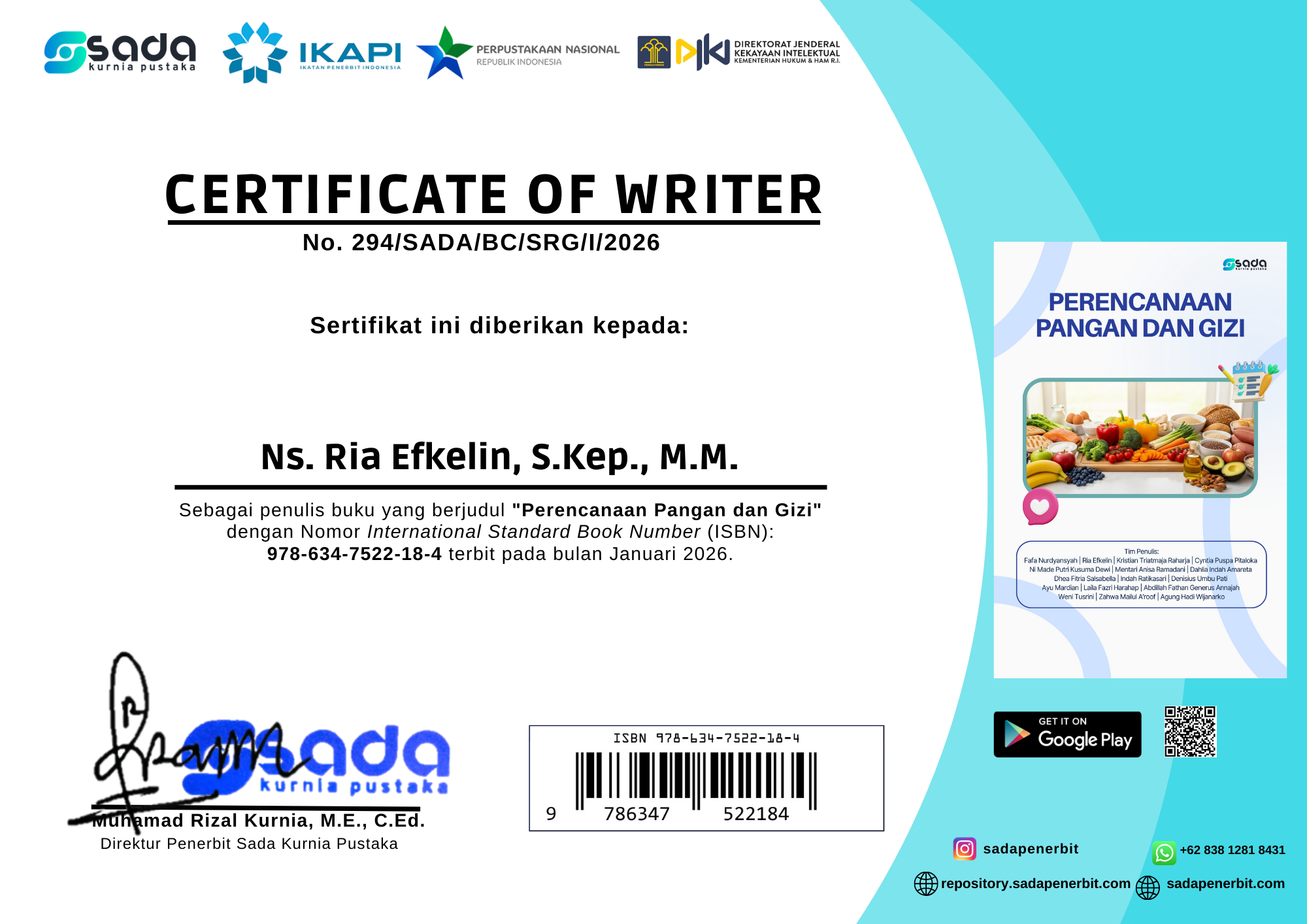 Certificate Buku Ns. Ria Efkelin, S.Kep., M.M Tahun 2026.png